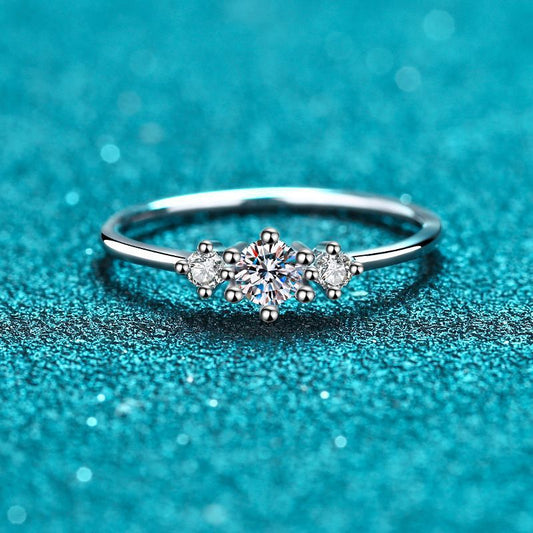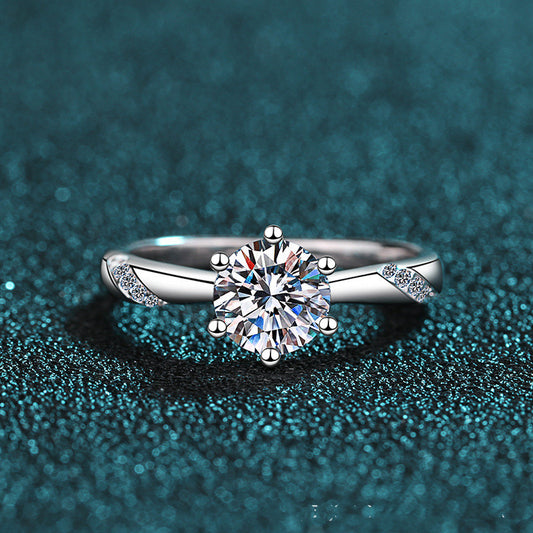 Sterling Silver Mosanite Six Claw Micro Inlaid Ring